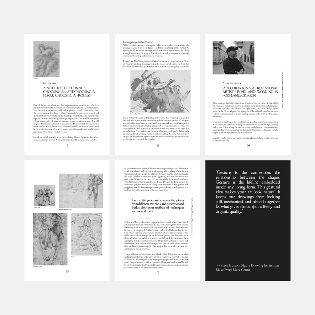 "The Process: A Simplified Approach to Drawing, Book 1: Gesture" is a 27-page digital zine that explores the importance of gesture in the art of drawing. From the first mark on the page to the final touches, gesture is the bedrock on which all great drawings are built. This zine provides a step-by-step guide on how to capture gesture in your drawings, and includes examples and exercises to help you master this vital skill.